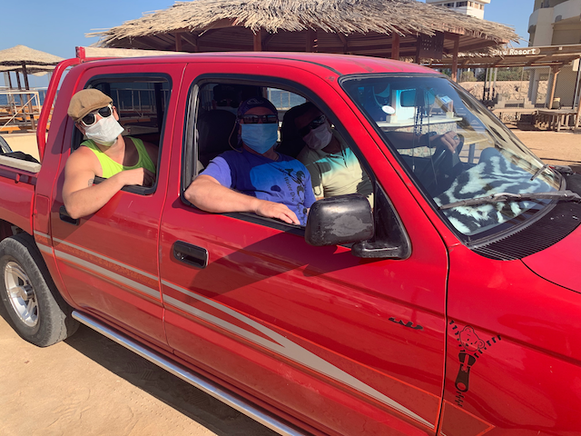 Beobachtet wurde das Trio beim Verlassen der Tauchbasis „Blue Water Dive Resort“. Beim Fluchtfahrzeug handelt es sich offenbar um einen roten Pick Up der Marke Toyota. Wir gehen davon aus, dass sich die gesuchten Personen noch im Grossraum Hurghada aufhalten. Vorsicht: Die Täter schrecken nicht vom Gebrauch des Lungenautomaten zurück. 😉