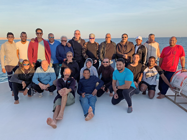 Auf dem Beitragsbild seht ihr das Team der Jungfernfahrt. Da ist natürlich allen voran unser Bootsbau Reporter James, der sein „Baby“ von der Kiellegung bis zur 1. Ausfahrt stetig begleitet und euch auch mit Fotos versorgt hat. Zudem mit dabei sind natürlich die stolze, ägyptische Crew sowie Tauchlehrer und Freunde unserer beider Tauchbasen.