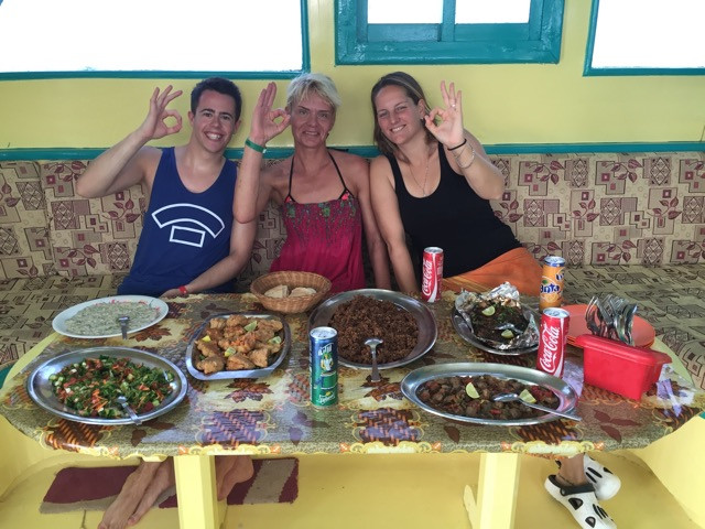 Zunächst hatten wir direkt 2 Geburtstage zu feiern. Unsere Gäste Janine (Beitragsbild) und Nina (Bild 2) feierten ihren Geburtstag auf unseren Tauchbooten und bei den Beiden wurden die Köche der Masria und der El Noras besonders kreativ. Der Wahnsinn was unsere Köche in ihrer kleinen Küche so zaubern. Dann haben Kathrin und Marvin erfolgreich ihren Open Water Diver Tauchkurs bestanden (Bild 3). Zum Abschluss gab es am letzten Tauchkurstag lecker Fischessen. Dann gehts weiter mit Anne (Bild 2). Sie feierte ihren 100. Tauchgang auf der El Noras und Ahmed unser Sternekoch verwöhnte alle mit Kuchen und anderen leckeren After-Dive Snacks.