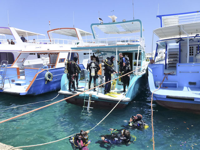 Das Schöne an einem Outdoor Sport ist ja, man weiss nie wie es kommt. Heute morgen spielte uns Neptun einen solchen Streich. Wegen starken Windes durften alle Boote im Bereich Hurghada heute nicht auslaufen. Nun ja, aber wir haben ja eine Alternative. So machten einige unserer Gäste kurzerhand einen Tauchgang an unserem Hausriff.