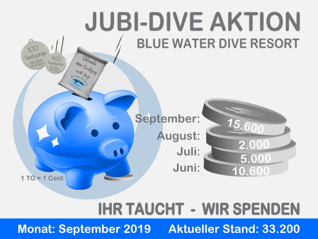 Im September wurden 15600 Jubiläumstauchgänge gesammelt, das bedeutet 156 Euro für den guten Zweck!