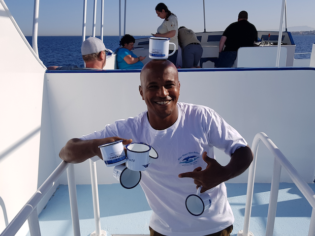 Unsere Tauchboot Crew von der Masria hat jetzt alle Tassen im Schrank. Jedem Besatzungsmitglied wurde nämlich eine Tasse mit seinem Namen und einem Bild der Masria darauf überreicht. Diese tolle Idee hatten unsere Stammgäste von der Magic Factory Diving.